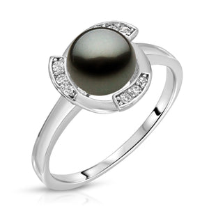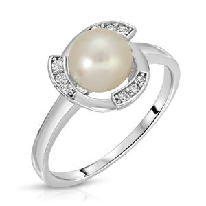 Like tiny stars the cubic zirconias in this ring sparkle revealing the lustrous shine of the pearl. Charming and elegant this piece will delight you.